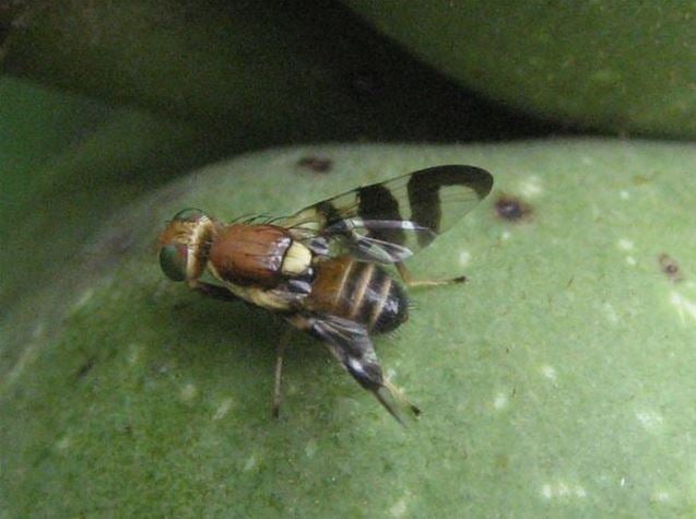 Dopo essersi nutrite per 3 – 5 settimane, le larve raggiungono la maturità, e abbandonano il frutto lasciandosi cadere al suolo dove si impupano. La generazione successiva si sviluppa nell’estate dell’anno seguente, sebbene alcune pupe possano rimanere nel terreno anche per 2 anni.