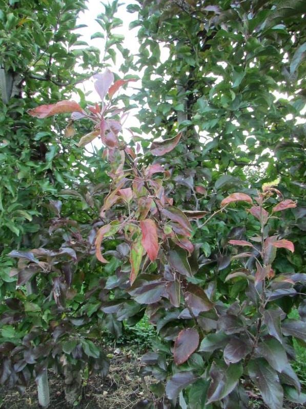 I sintomi tipici della malattia sono gli affastellamenti dei germogli e le foglie allungate. In primavera gli alberi ammalati presentano un anticipo della chiusura delle gemme a legno. Gli affastellamenti dei germogli, a forma di "scopa", sono di colore rosso e il legno non è completamente maturato. Sintomi meno specifici sono la colorazione rossastra delle foglie, clorosi, frutti molto piccoli, e la fioritura in autunno. Soprattutto in autunno i sintomi sono marcati e ben visibili. La presenza dei sintomi è legata al clima e sembra essere in relazione con la diminuzione della temperatura in autunno.